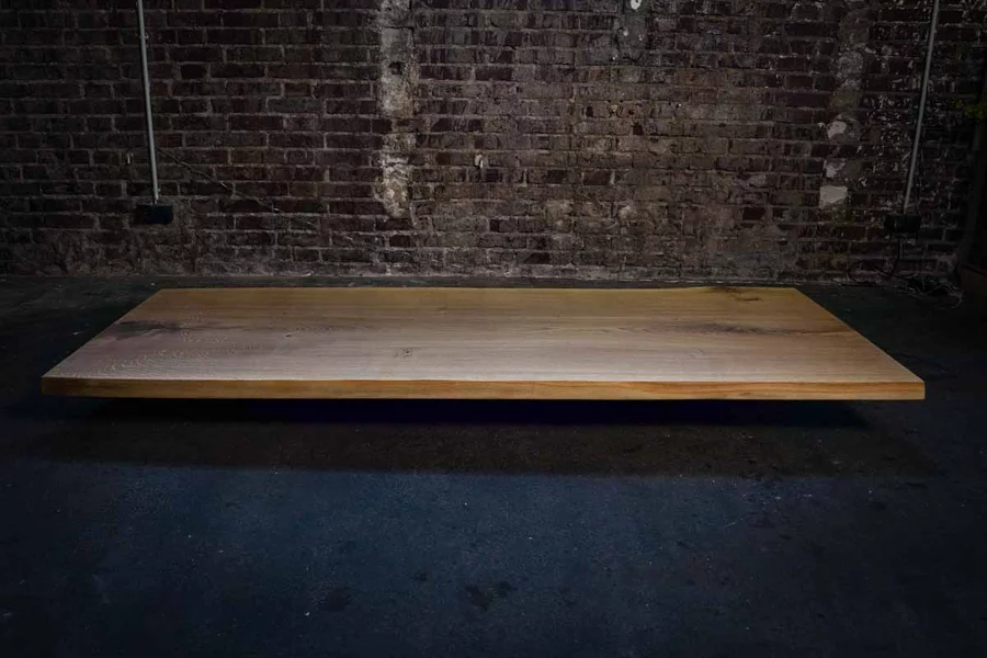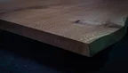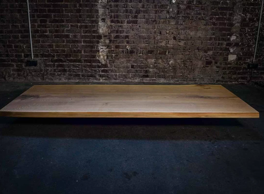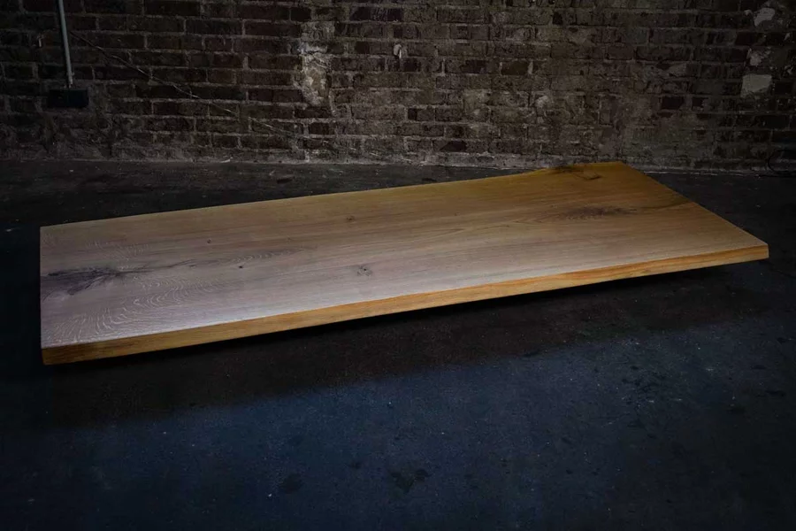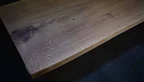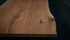 Natur geölte Eiche Baumscheibe Unikat Nr. 411, 235x98x5 cm, mit Baumkante und dunkelbraun gefüllten Ästen & Rissen. Kombinierbar mit Nr. 412.