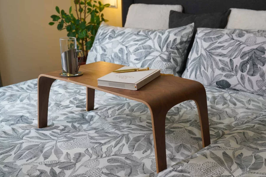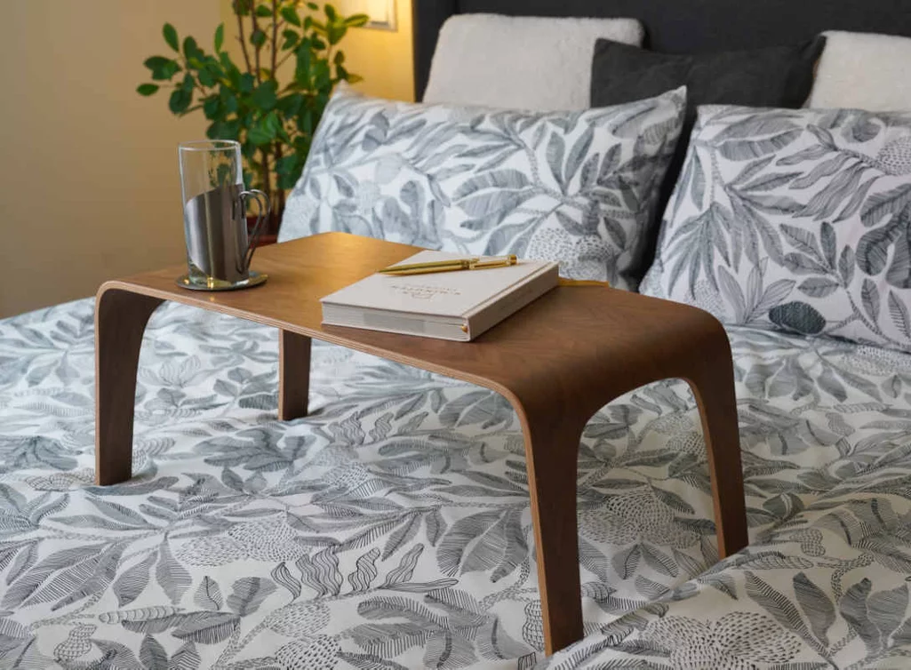 Laptop Table Nussbaum – kompakter Bett- & Sofatisch aus Multiplex