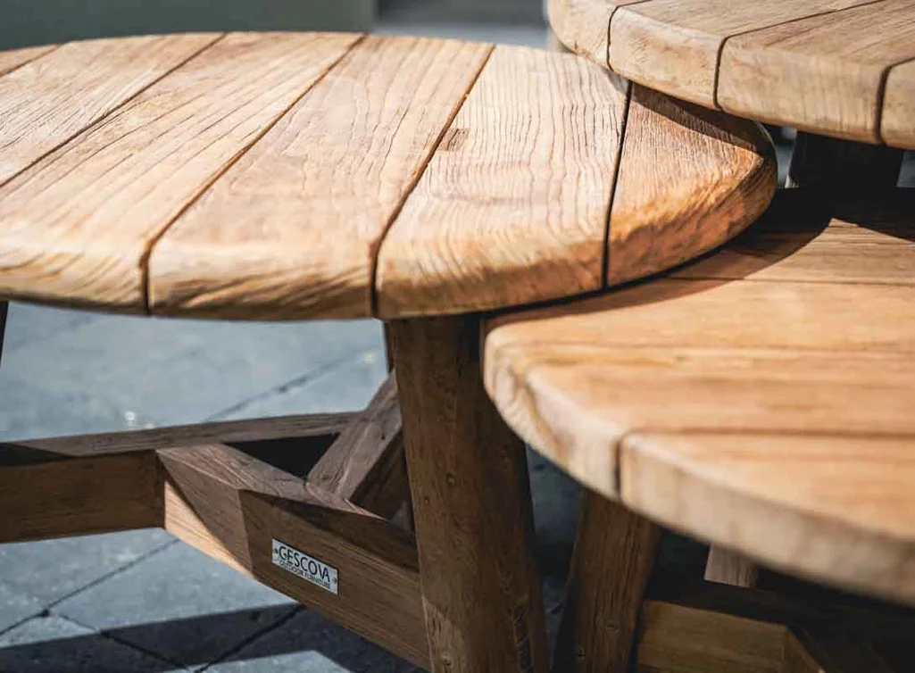 Dank drei Größen kannst du die Beistelltische individuell kombinieren: als praktischer Side-Table neben der Gartenlounge, als Servicetisch für Drinks & Snacks oder als größerer Outdoor-Couchtisch. Die runde Form mit feiner Teakoberfläche macht sie zu einem eleganten Hingucker – einzeln oder im Set.