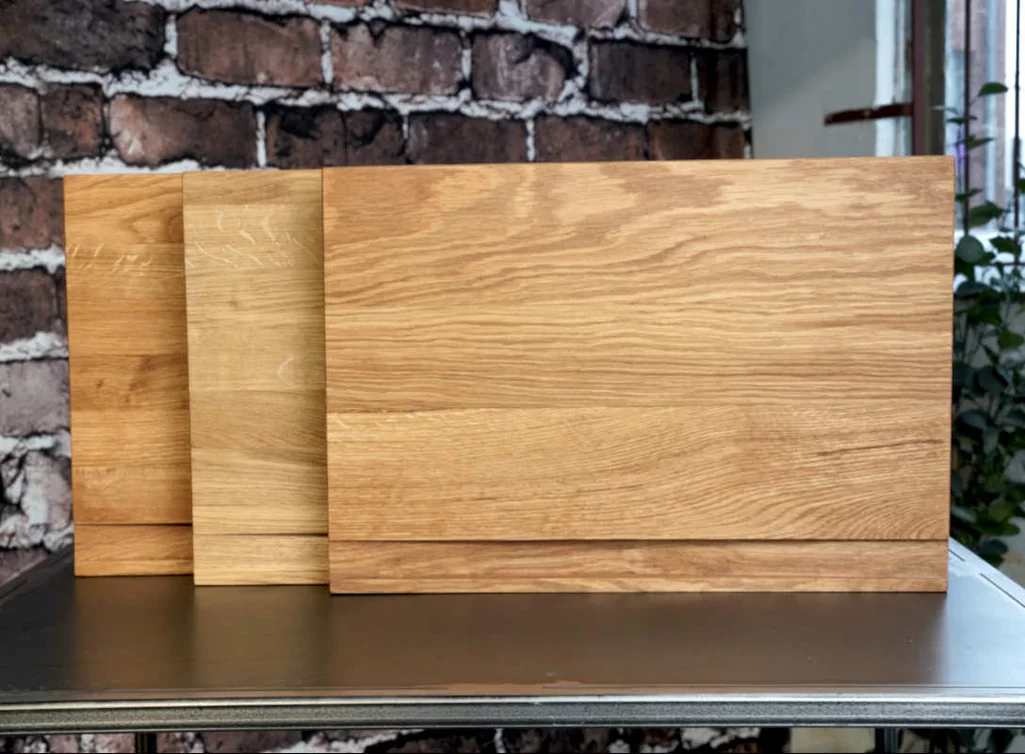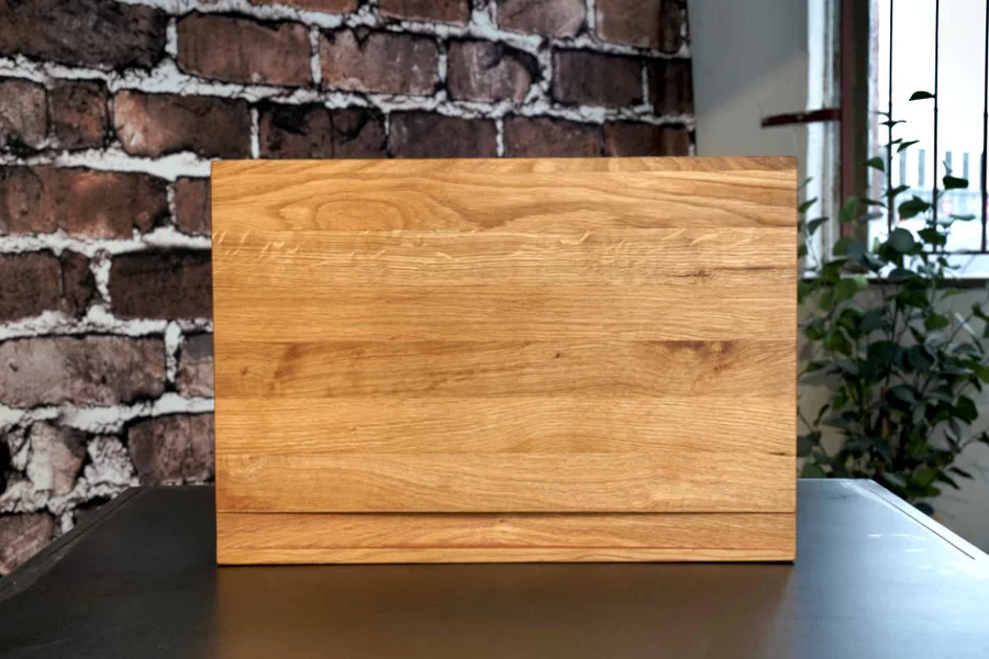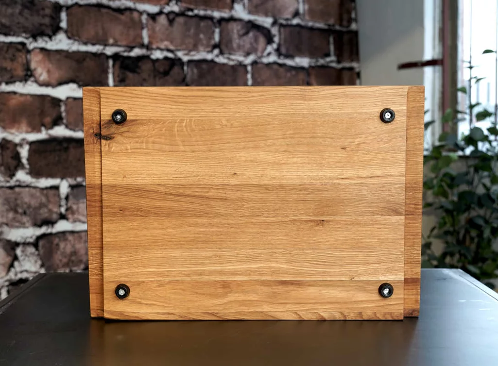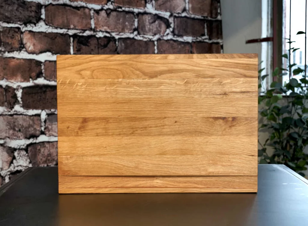 Dieses Eiche-Schneidebrett 46 × 32 cm ist mehr als nur Küchenzubehör – es ist ein durchdachtes Werkzeug. Dank der integrierten Saftrille und dem minimalen Gefälle fließen Fleisch- oder Obstsaft gezielt in die Rinne, statt auf die Arbeitsplatte zu tropfen.