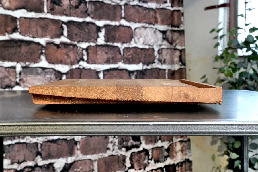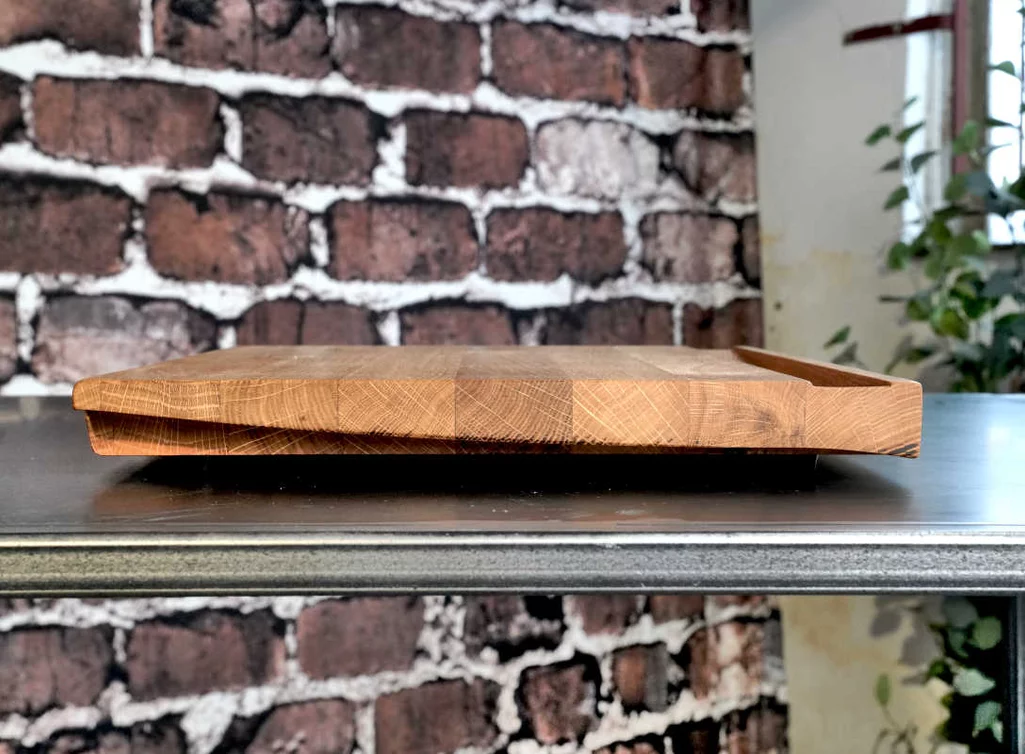 Das Eiche-Schneidebrett mit Saftrille und Gefälle überzeugt durch Funktionalität, Design und handwerkliche Präzision. Es wurde speziell entwickelt, um beim Schneiden von Fleisch, Obst oder Gemüse Flüssigkeiten sauber aufzufangen – ideal für jede Küche mit Anspruch an Qualität und Stil.