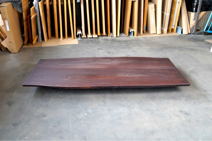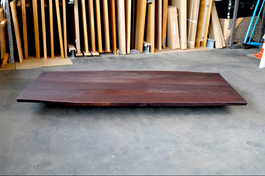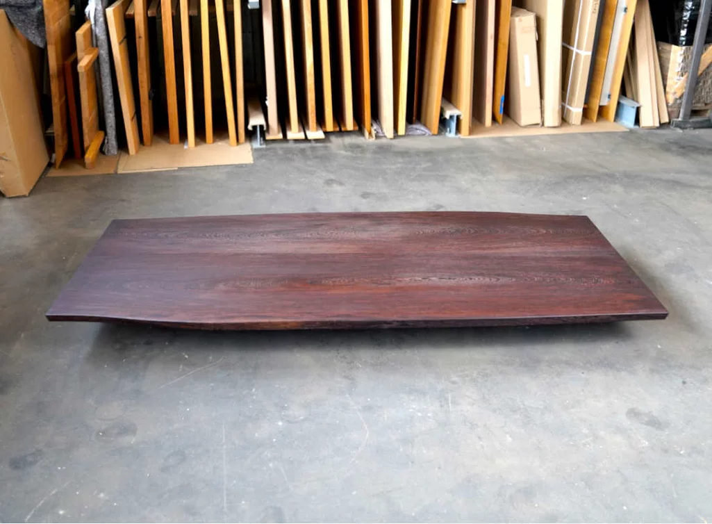 Durch die Wahl frei anpassbarer Längen (40–300 cm) und Breiten (20–140 cm) passt sich die Platte jedem Wohn- und Arbeitsbereich perfekt an. Die natur geölte Oberfläche lässt die dunkelbraune bis fast schwarze Maserung eindrucksvoll hervortreten.