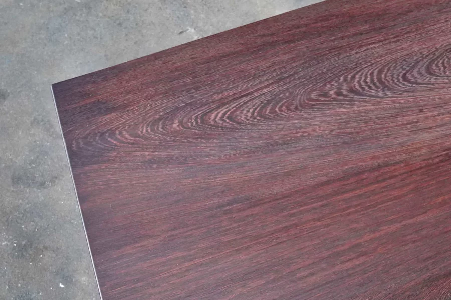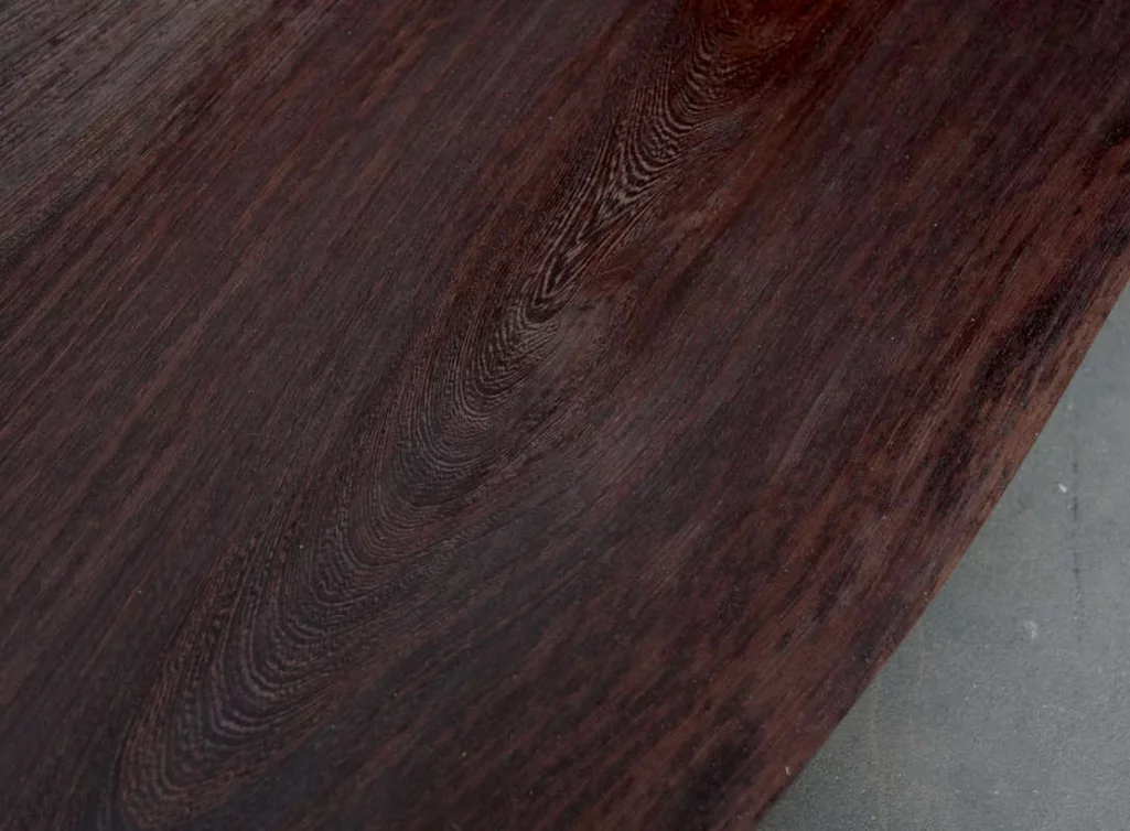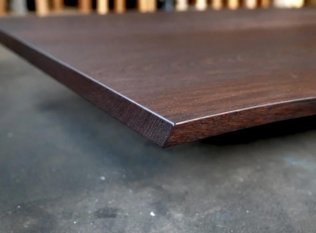 Diese maßgefertigte Wenge Tischplatte steht für außergewöhnliche Qualität. Während viele Holztischplatten aus vielen schmalen Lamellen bestehen, wird diese Platte aus nur 2–3 massiven, breiten Wenge-Bohlen gefertigt. Dadurch entsteht: